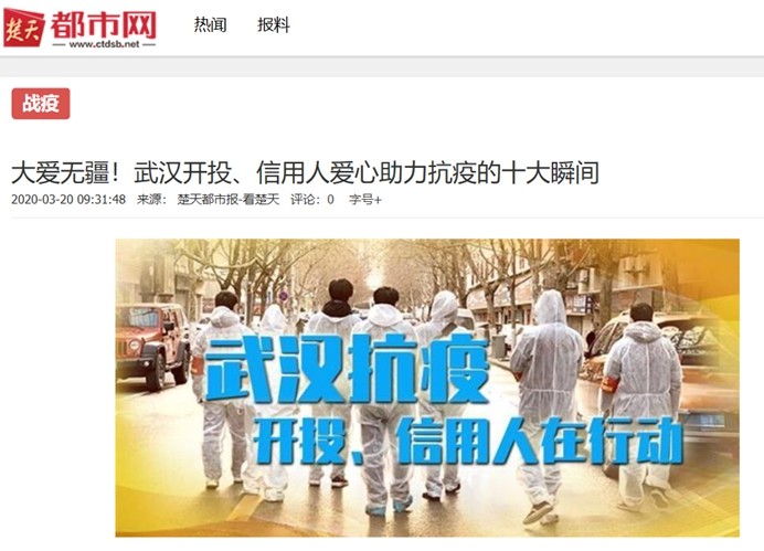 楚天都市报:大爱无疆!武汉开投、信用人爱心助力抗疫的十大瞬间