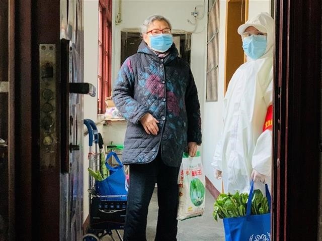 “幸福来敲门”志愿小分队都是开投、信用公司下沉唐蔡社区的突击队员,在唐蔡社区值守了20多天。社区多家老人失独、丧偶且生活困难、行动不便,也不会用手机采购生活物资。