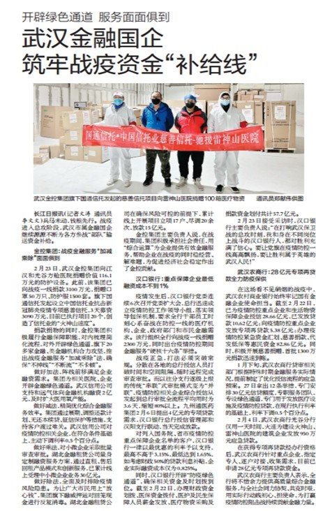 开辟绿色通道 服务面面俱到 武汉金融国企筑牢战疫资金“补给线”