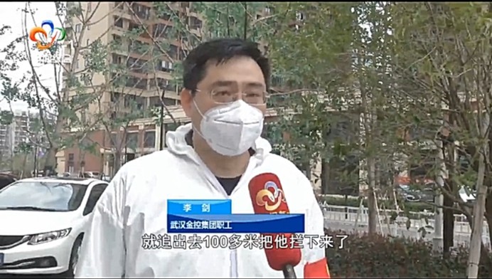 av在线 职工李剑:我和另外一个值守队员,追出去100多米,把他拦下来,带回到值守点。当时他把口罩取了,情绪也很激动,没有任何手续,我们当时也没跟他正面发生冲突,就是劝阻他,第一要冷静,第二我们就采取了报警,我们有这样的要求,坚决不能随便放过一个。
