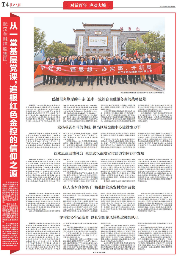 姚家山党课就是武汉金融控股集团推动党史学习、党的建设入脑入心、走深走实的一个缩影。2021年,武汉金融控股集团全面推动集团党史学习、党建工作向基层拓展,向纵深拓展,以高质量党建引领高质量发展,为“十四五”开好局、起好步,加快集团一流综合金融服务商建设提供不竭思想动力。