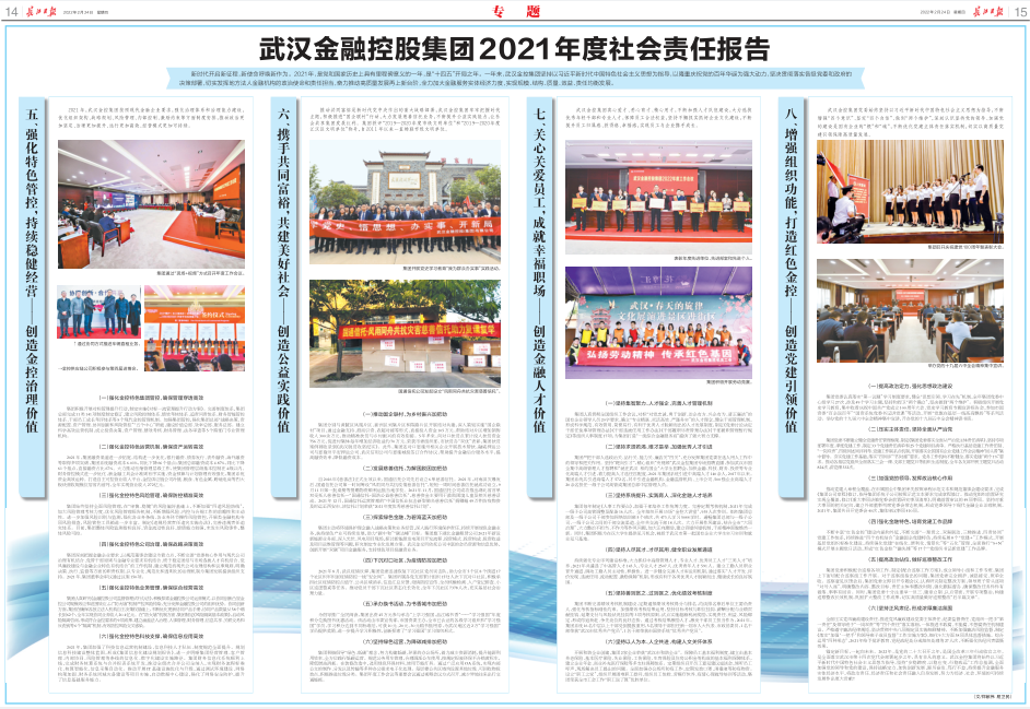 2021年,在武汉市委市政府坚强领导下,av在线 围绕主责主业,着力推动“优质资产证券化、经营机制市场化、薪酬考核专业化、风险防控计量化”,加快推动盈利能力、资产质量、管理水平等实现新提升,整体竞争力、创新力、影响力和抗风险能力进一步增强。