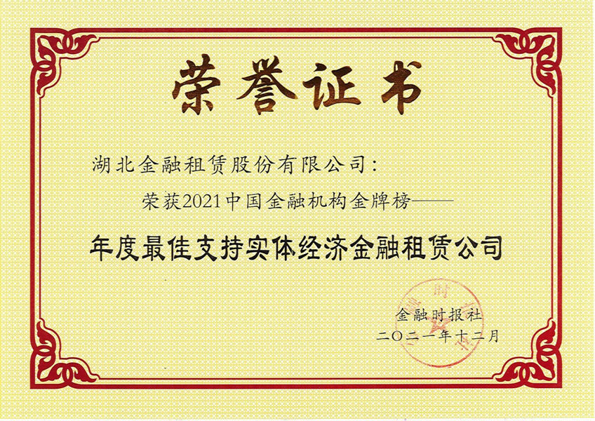 湖北金融租赁公司连续四年获评年度最佳支持实体经济金融租赁公司奖。