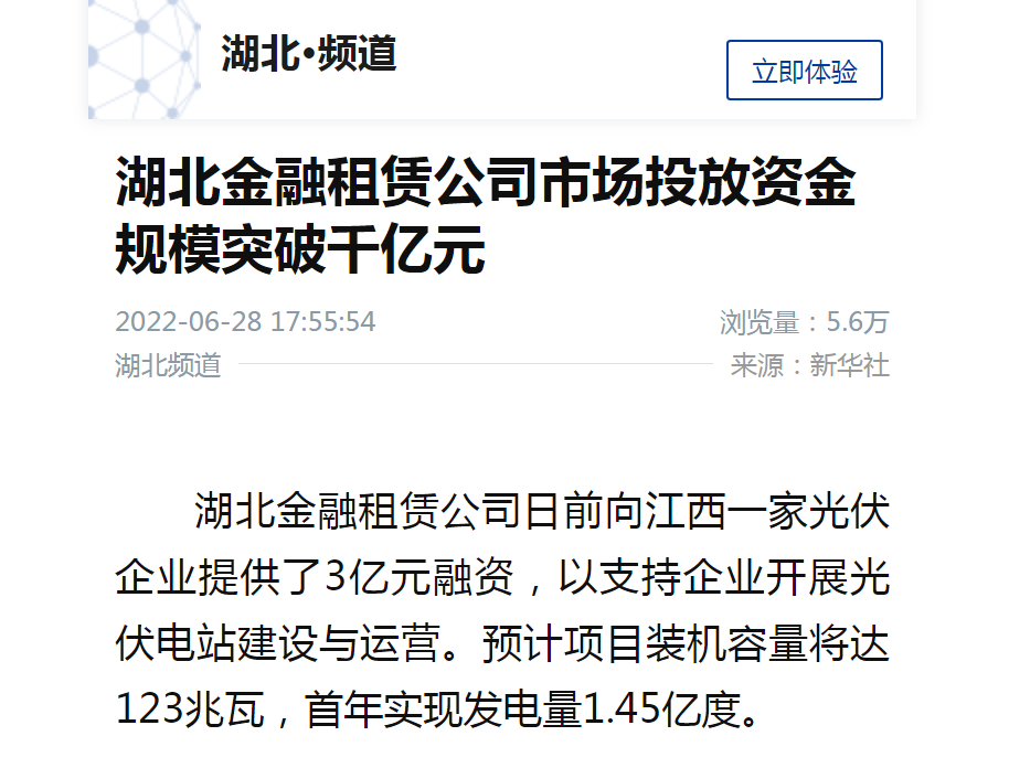 新华社:湖北金融租赁公司市场投放资金规模突破千亿元