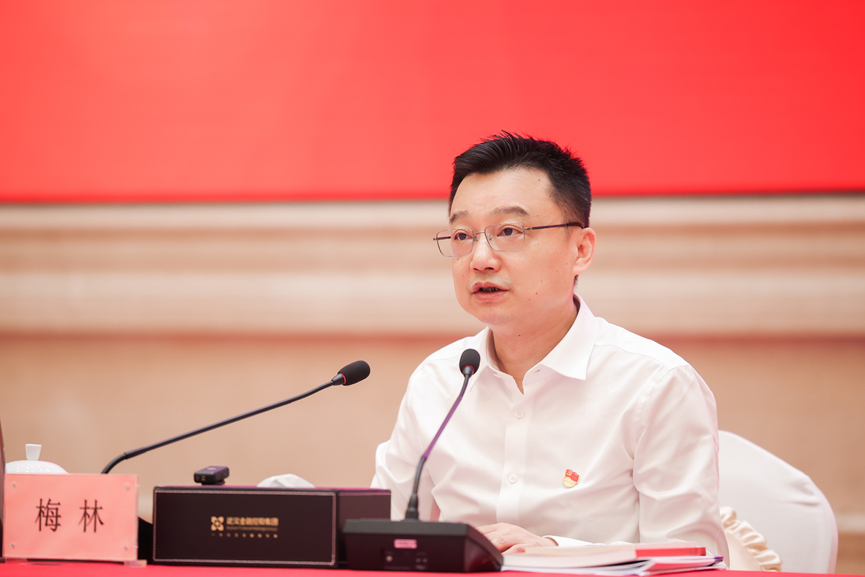 梅书记代表集团党委新班子号召集团系统广大党员干部职工,要进一步强化责任担当,奋进创新发展,以强烈的历史使命感推动集团各项事业再出发、再创业、再出彩。一是坚定起来,以理想信念之光照亮前行之路。二是行动起来,以接续奋斗之姿担当时代之责。三是改革起来,以推陈出新之风铸就发展之魂。四是规范起来,让合规风控之治稳固发展之基。五是联动起来,以综合金融之能服务武汉之需。六是活跃起来,以争先进位之气形成向上之势,接续奋斗、整装出发,谱写新时期集团高质量发展新篇章,为新时代英雄城市、建设社会主义现代化武汉作出新的更大贡献。