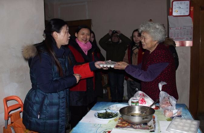 当日上午,德望社区活动室内喜气洋洋,集团志愿者们与社区居民一同捏汤圆,并将热腾腾、圆溜溜的寄托了浓浓爱心的汤圆送到老党员、贫困党员及孤寡老人家中。
