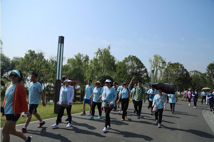 另外52名员工则是参加了徒步活动。大家结伴而行、你追我赶,一鼓作气完成10公里沿湖徒步项目。